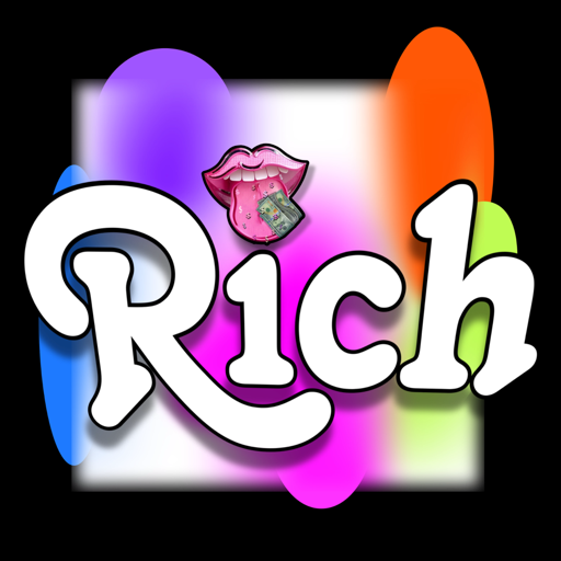 the word rich on a black background with a pink lip